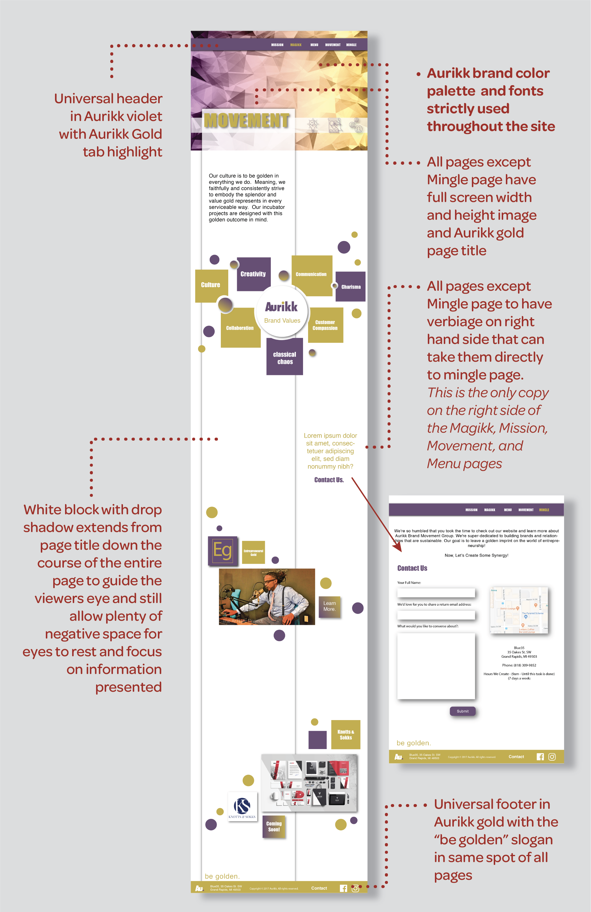 In the next step in the process, I and other designers put together wireframes and basic web page ideas based on the team’s strategy. Each designer worked on different pages while still following the Aurikk brand and decided strategy.